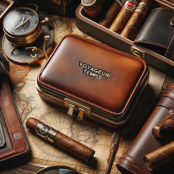 Whether you're traveling for business or on vacation, the "Voyageur Tempo" Case ensures your cigars remain in pristine condition, protected from the elements and ready to enjoy at any time. Crafted from premium leather, this case is both durable and stylish, reflecting the sophisticated taste of its owner.