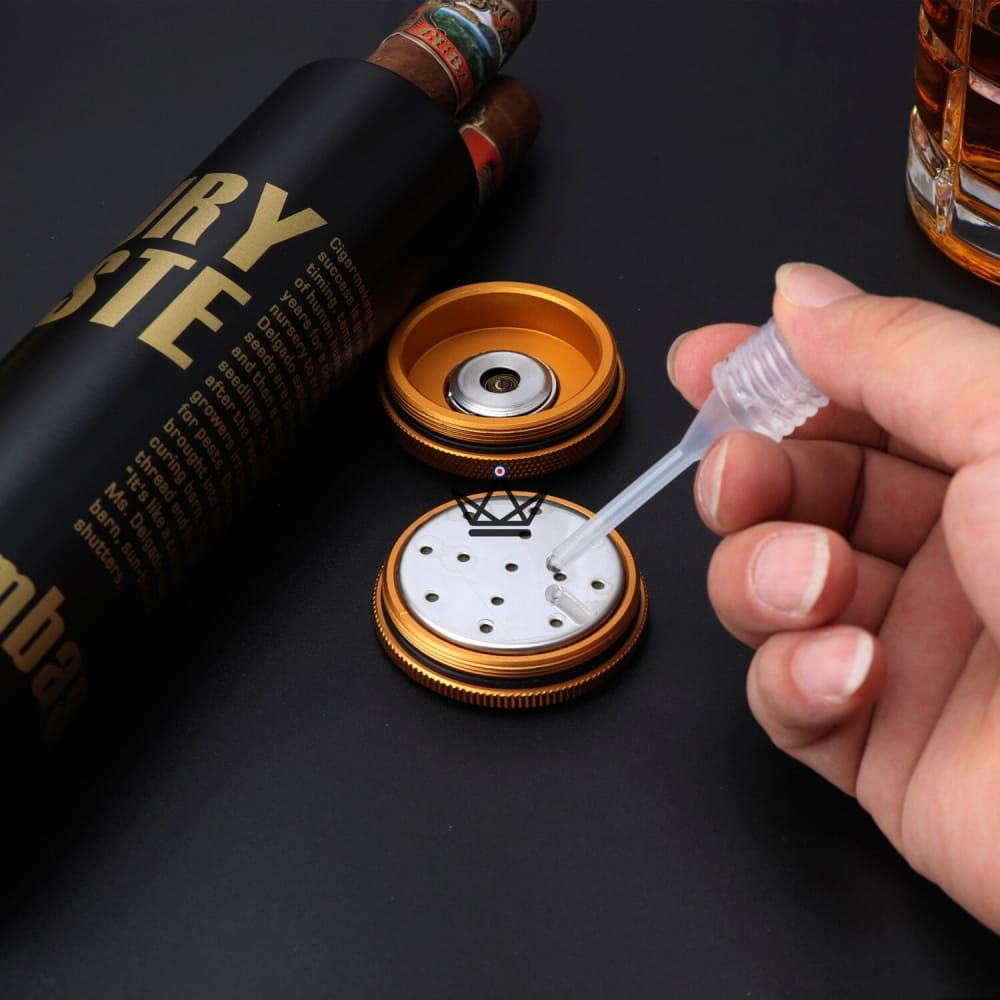 The LYROK cigar humidor, a cylindrical steel case, is a jewel of functionality and elegance for cigar lovers. Its unique design, capable of holding between three and five cigars, combines style and originality.