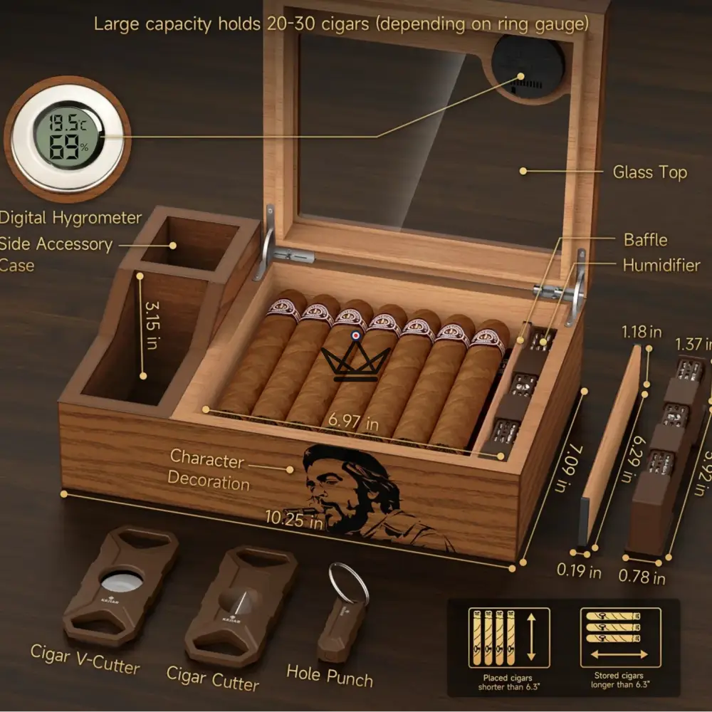 - Kapazität: 20 bis 30 Zigarren je nach Größe