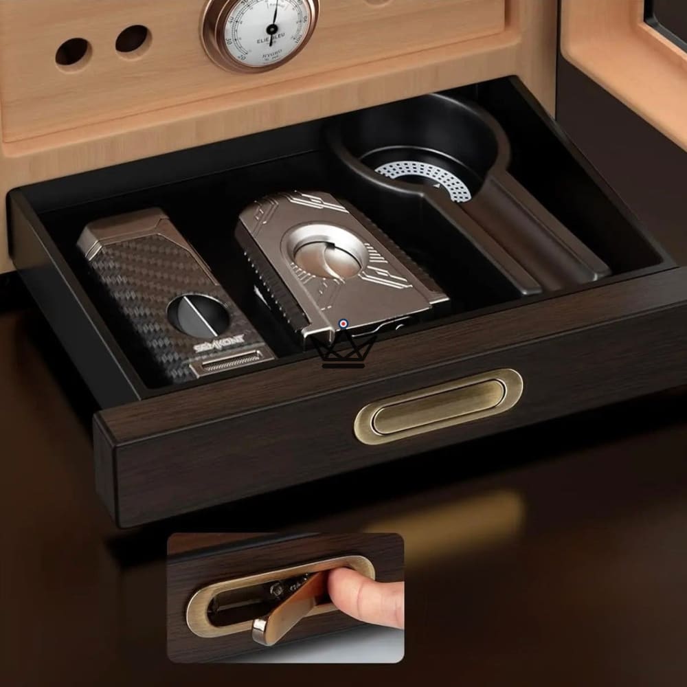 - Praktische Fächer zur Aufbewahrung von Zigarrenschneider, Feuerzeug, Pipette etc.