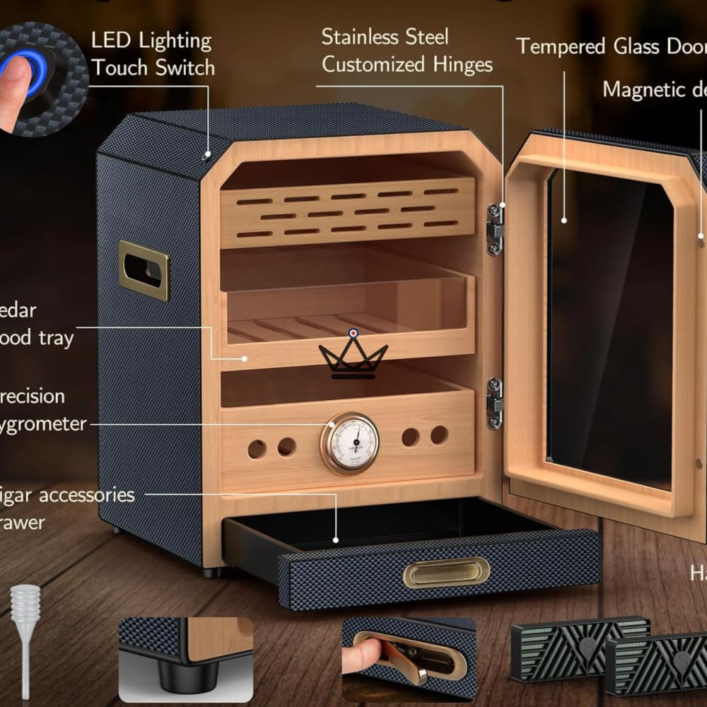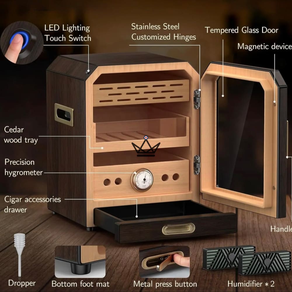 - Dieser Zigarrenhumidor eignet sich ideal zur Aufbewahrung renommierter Marken wie Cohiba , Montecristo , Romeo y Julieta , Partagás , Bolivar oder H. Upmann unter optimalen Lagerbedingungen.