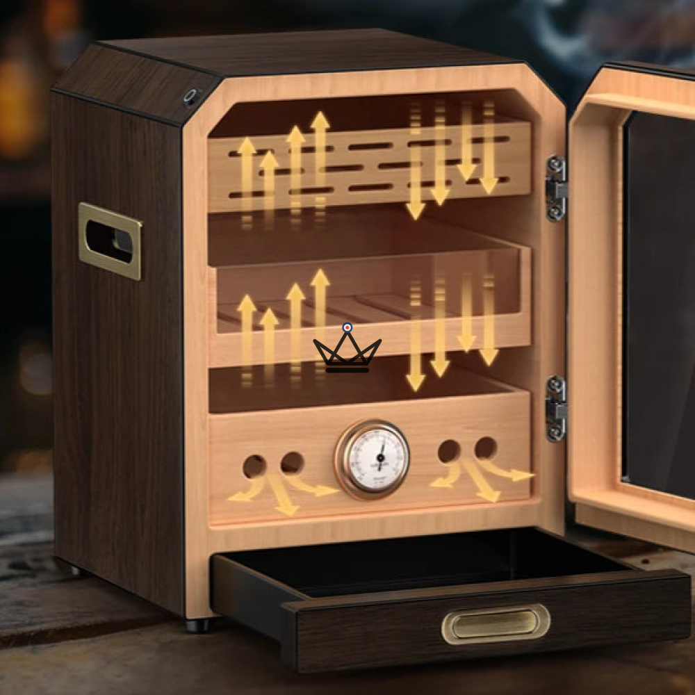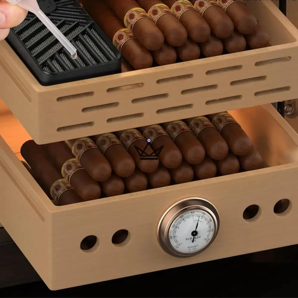 - Stabile Beibehaltung zwischen 65 % und 75 % relativer Luftfeuchtigkeit , ideal zum Bewahren der Aromen und der Struktur Ihrer Zigarren.