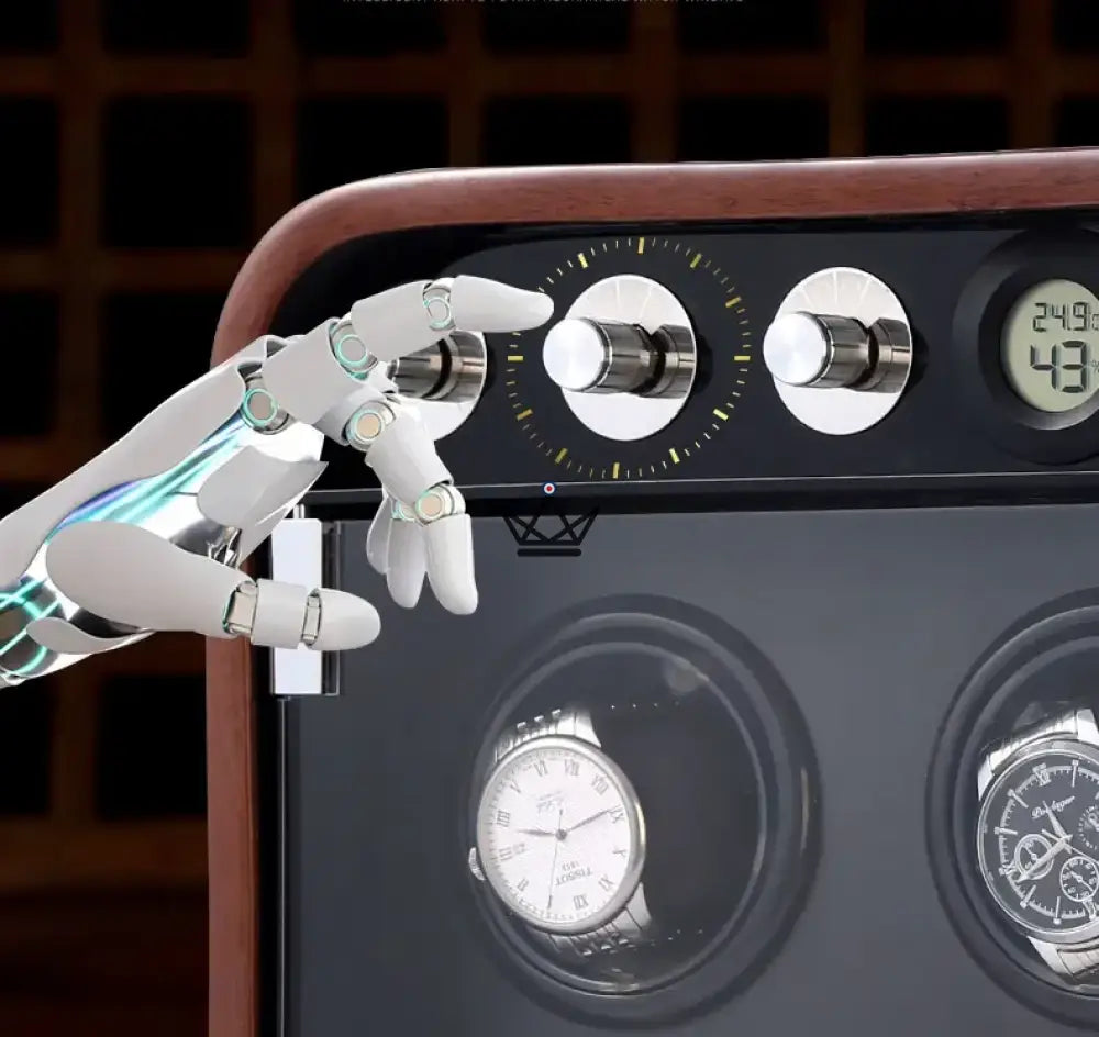 Rotationsanpassung: Sie haben die volle Kontrolle über die Anpassung der Rotationseinstellungen jeder Uhr. Wählen Sie aus mehreren Modi, damit Ihre Uhren optimal aufgezogen werden und ihre Präzision erhalten bleibt.
