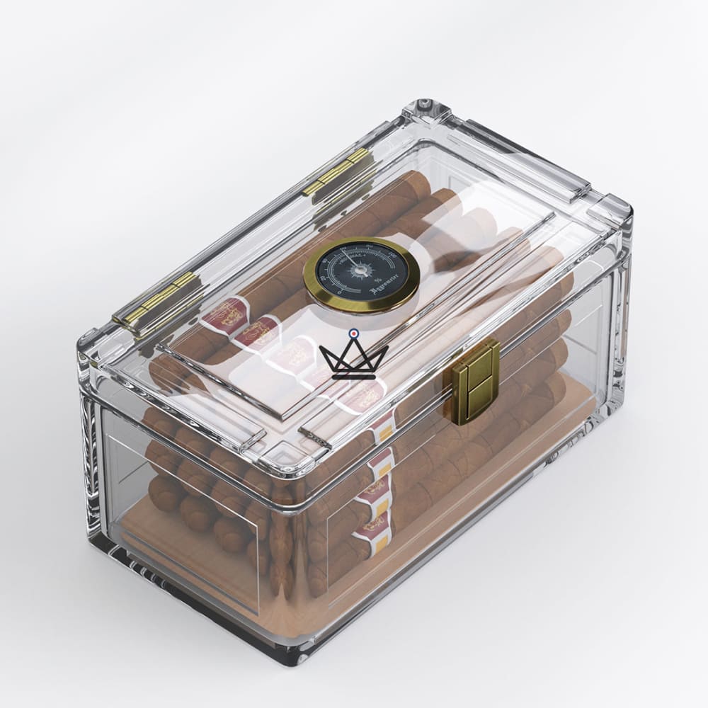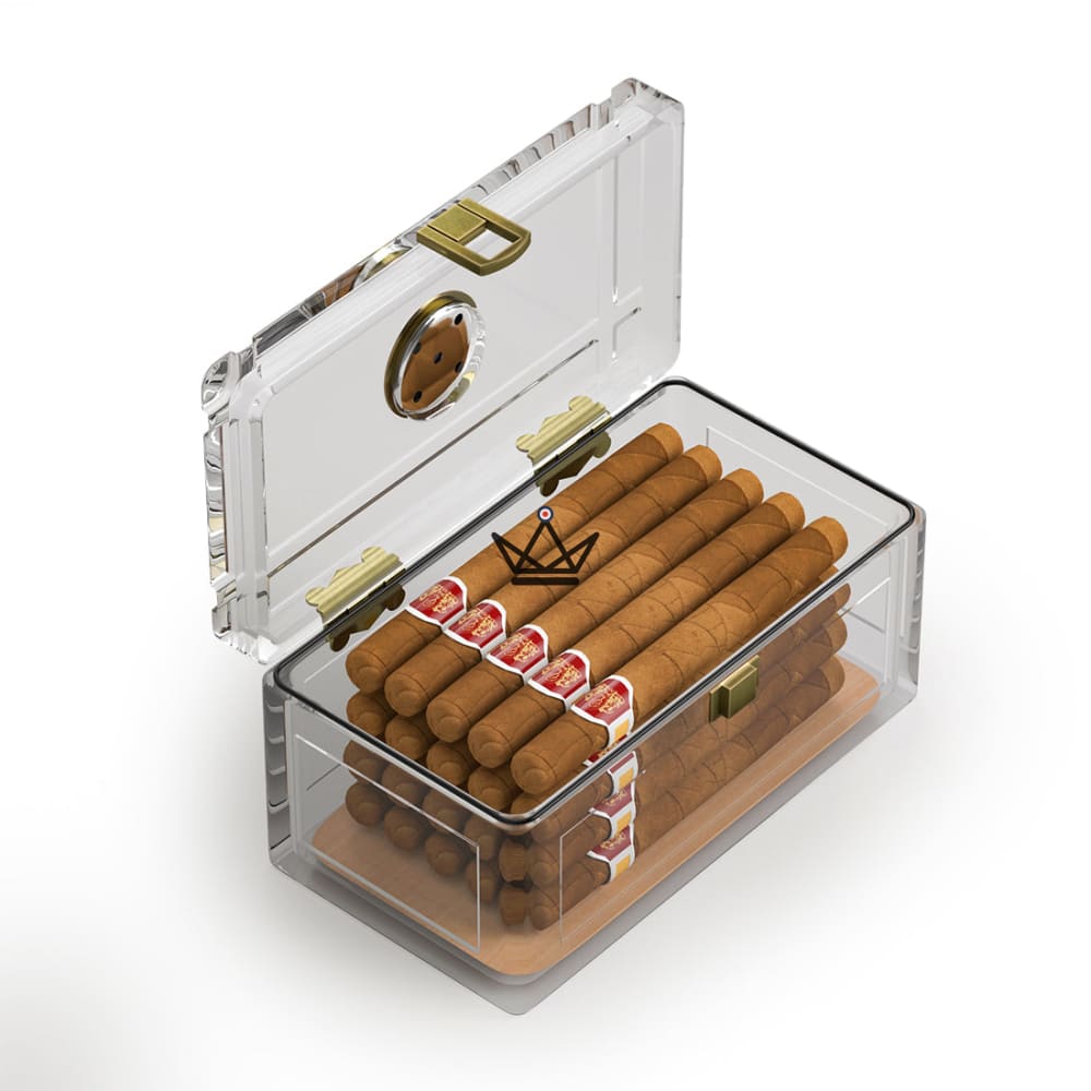 Dieser hervorragende transparente Humidor kann dank seiner Acrylkonstruktion bis zu 20 Ihrer Lieblingszigarren enthalten.