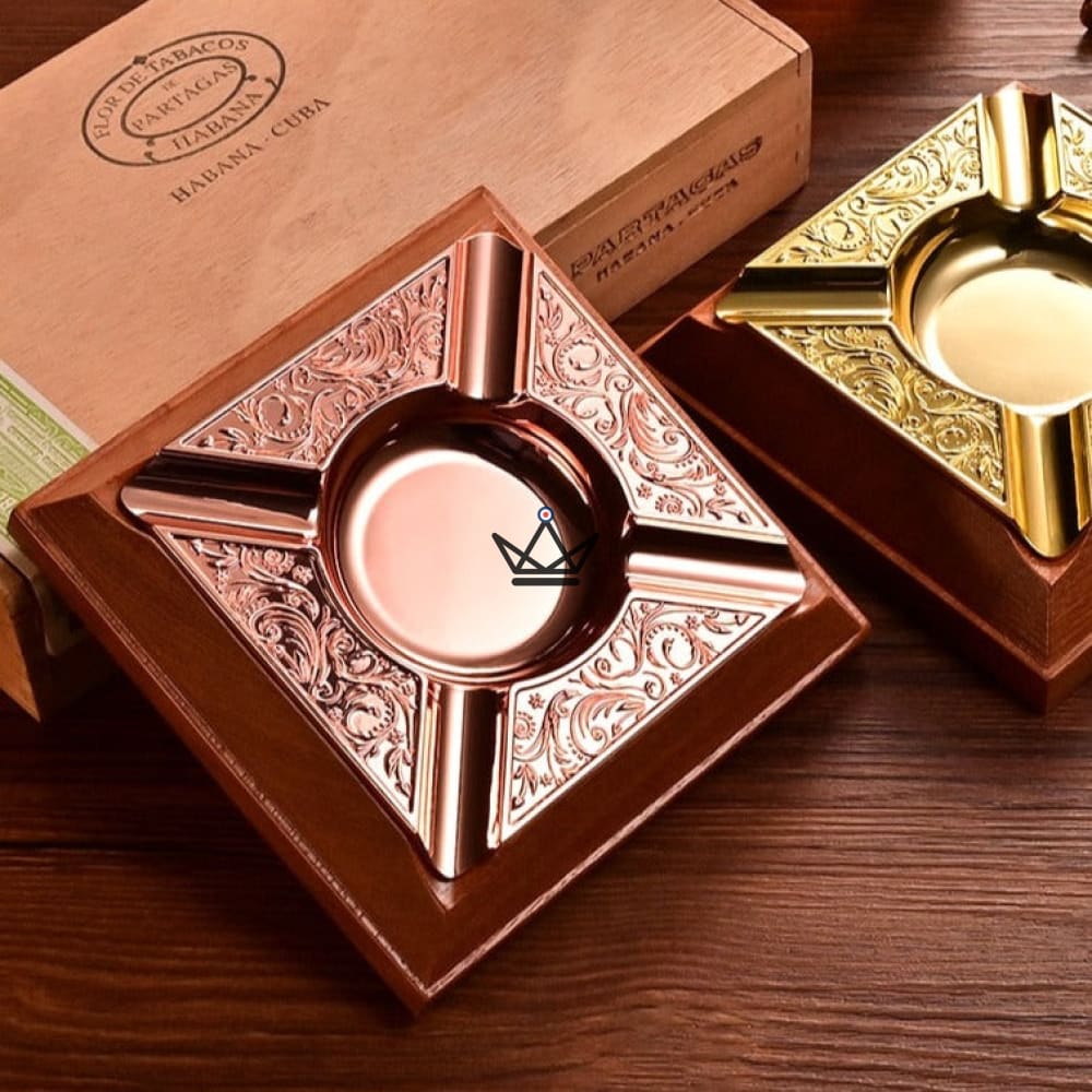 Diese Aschenbecher sind in vier verschiedenen Farben erhältlich und weisen orientalisch inspirierte Muster und Details auf, die Ihrem Entspannungsbereich einen Hauch von Charme und Exotik verleihen. Die quadratische Form dieser Aschenbecher bietet eine hohe Stabilität, sodass Sie Ihre Zigarre problemlos abstellen können, ohne dass die Gefahr besteht, dass sie umgeworfen wird.