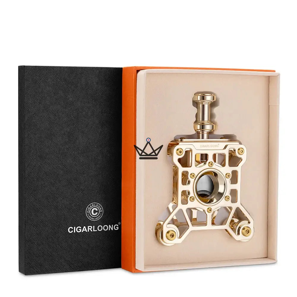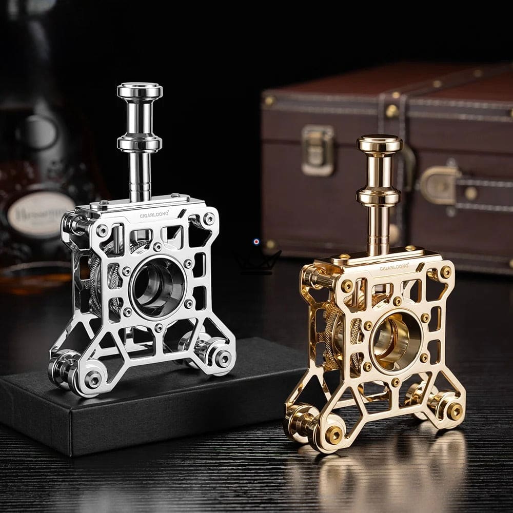 Der aus hochwertigem Edelstahl gefertigte, durchbrochene Körper offenbart eine spektakuläre geometrische Struktur, die von der Feinmechanik inspiriert ist. Die vertikale Bewegung ermöglicht dank direktem Druck auf den Zigarrenkopf einen sauberen und glatten Schnitt und garantiert jedes Mal ein professionelles Ergebnis.