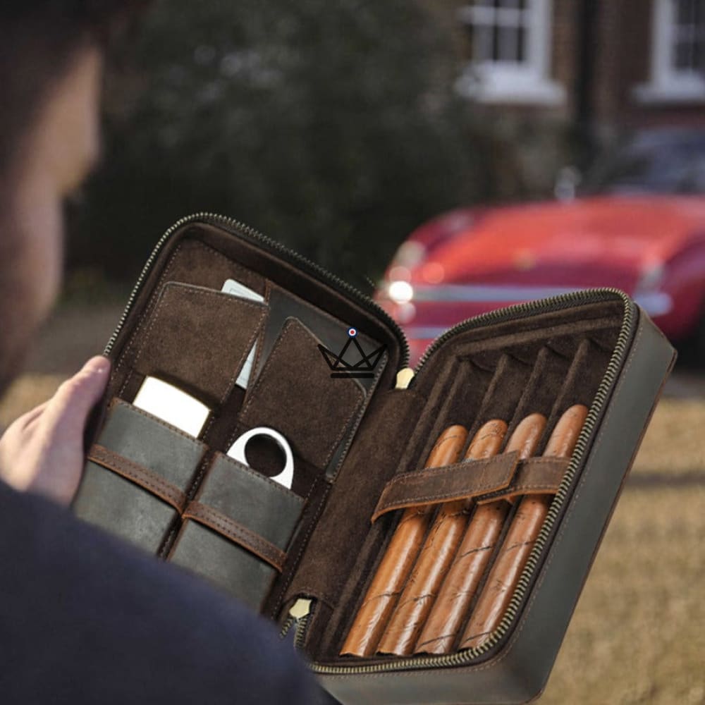 Egal, ob Sie auf Geschäftsreise oder im Urlaub sind, mit diesem Reiseetui aus echtem Leder für Herren können Sie Ihre Lieblingszigarren jederzeit und überall genießen.
