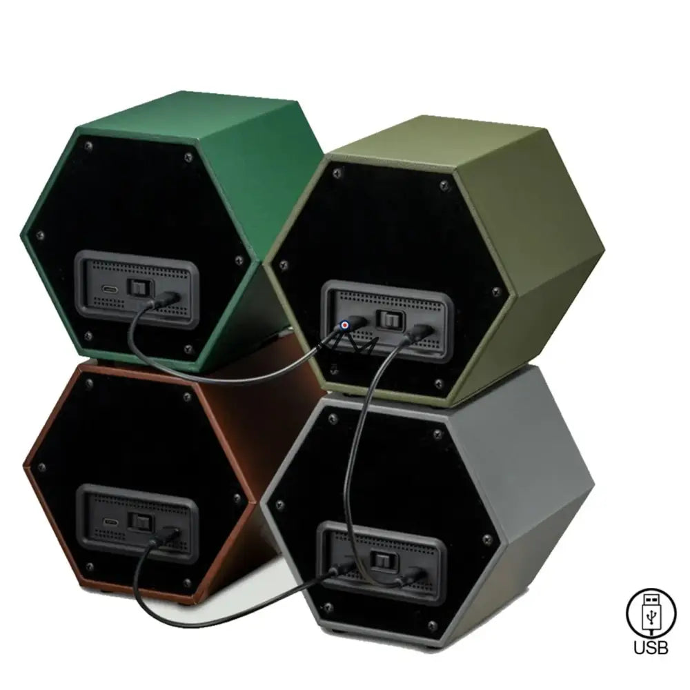 Der Jebely Hexagon wird in sechs attraktiven Farben angeboten: Ebony Black, Brown Klassisch, Smaragdgrün, Ruß, Militärgrün und Mausgrau . Jede Farbe passt perfekt in jedes Interieur und verleiht ihm einen Hauch von Eleganz.