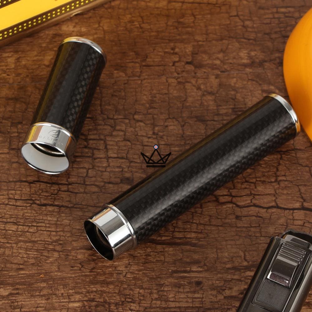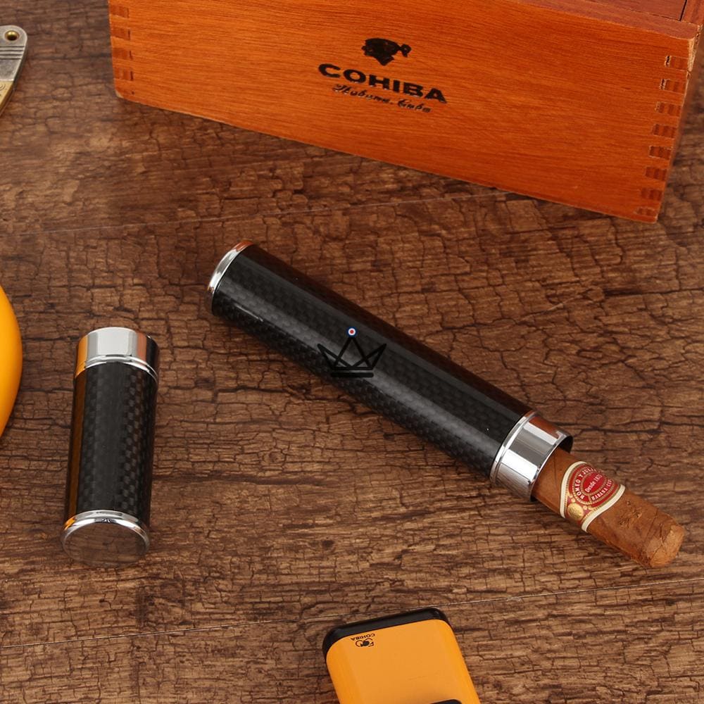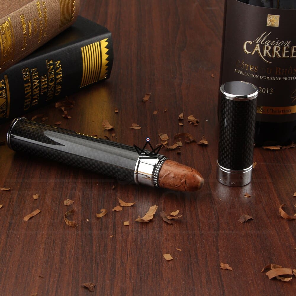 Aus einer soliden Metallhülle gefertigt und mit einer dünnen Kohlefaserschicht überzogen, schützt dieses Transportrohr Ihre Zigarre vor Licht und Temperaturschwankungen.