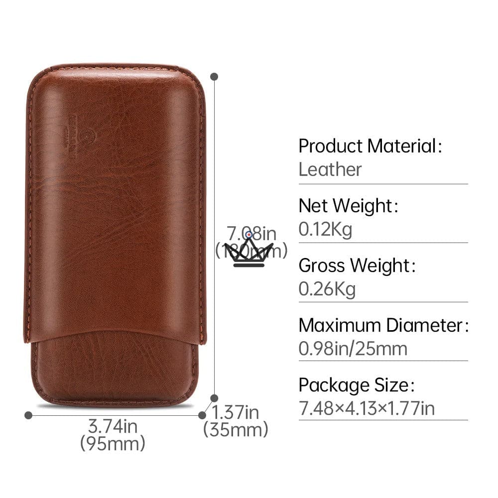 Disponible en taille 3 cigares (18 x 9,5 x 3,5 cm), vous pouvez y accueillir jusqu'à 3 cigares de diamètre 25mm. Ainsi, vous pouvez emporter avec vous vos cigares préférés en toute sécurité, où que vous alliez.