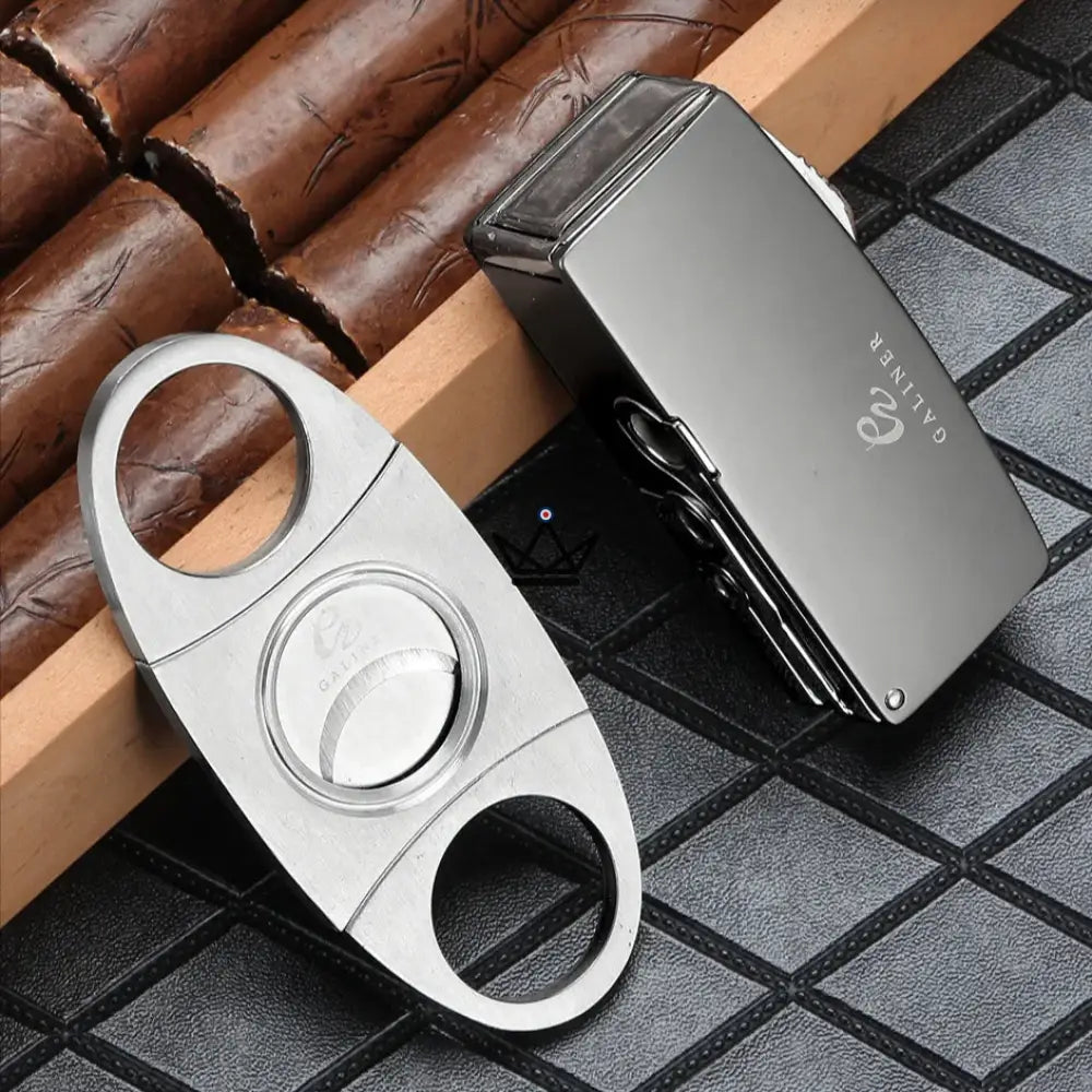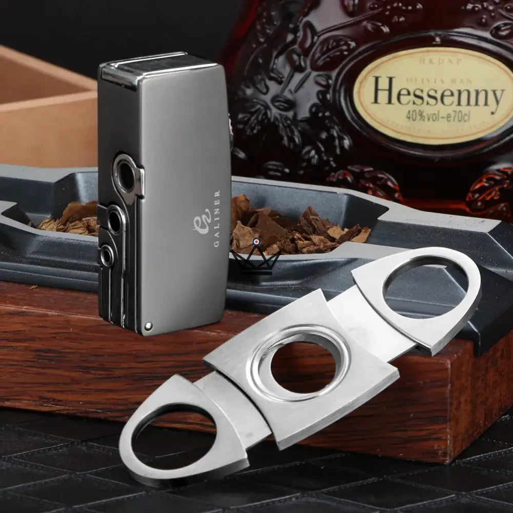 Le Pack Briquet & Coupe-Cigare STIX est l'ensemble haut de gamme conçu pour les passionnés de cigares à la recherche d'élégance, de performance et de raffinement. Ce set de luxe comprend un briquet torche à flamme bleue, un coupe-cigare double guillotine en acier inoxydable, ainsi que 3 poinçons interchangeables de différentes tailles (7mm, 9mm, 11mm), offrant une coupe personnalisée pour chaque cigare.