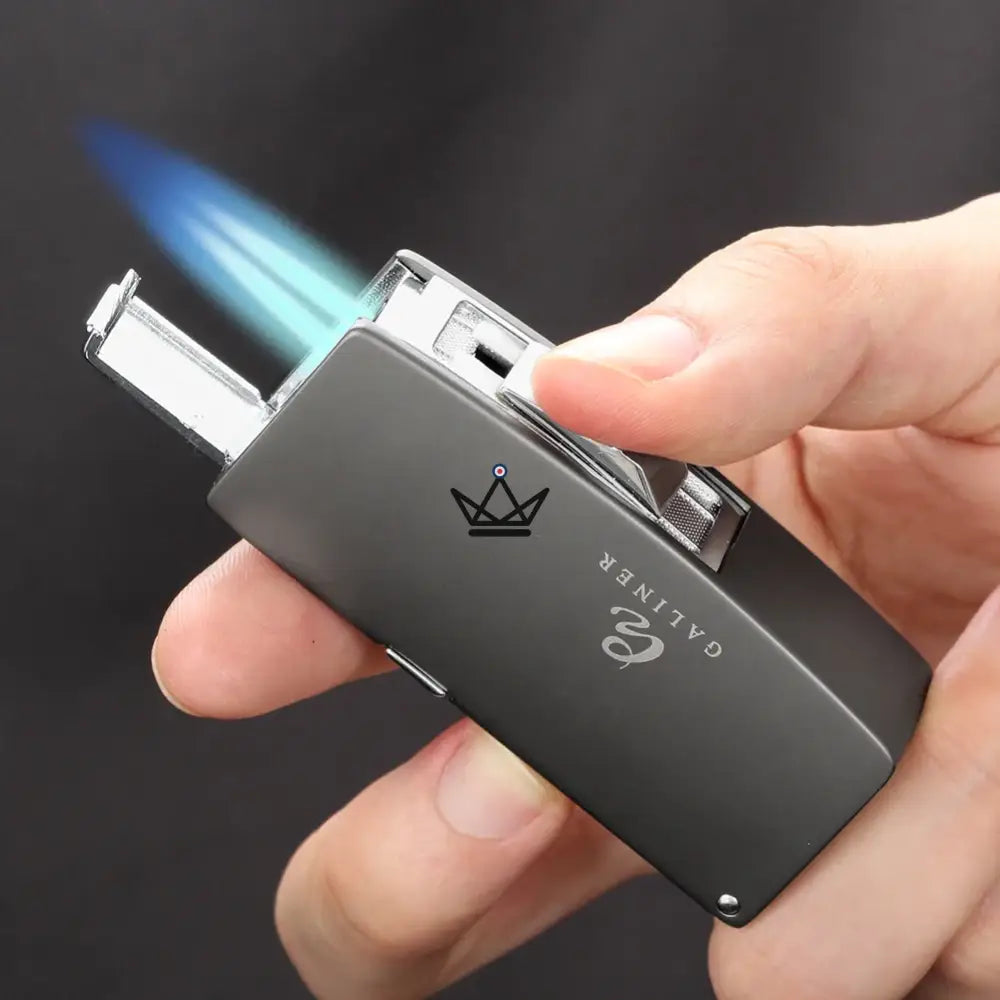 Le briquet torche STIX est équipé d'une flamme bleue haute intensité, assurant une ignition rapide et efficace de vos cigares. Son design compact et moderne, combiné à des finitions métalliques élégantes, vous permet une prise en main confortable tout en ajoutant une touche de luxe à vos accessoires.