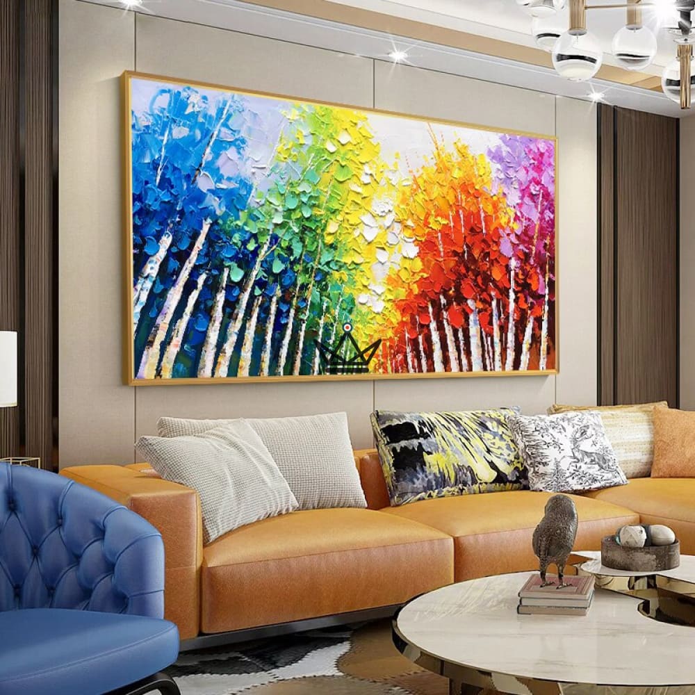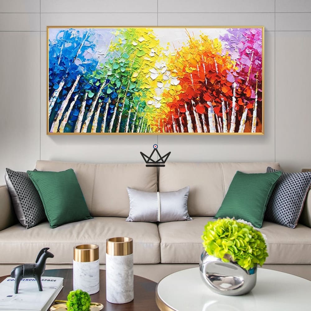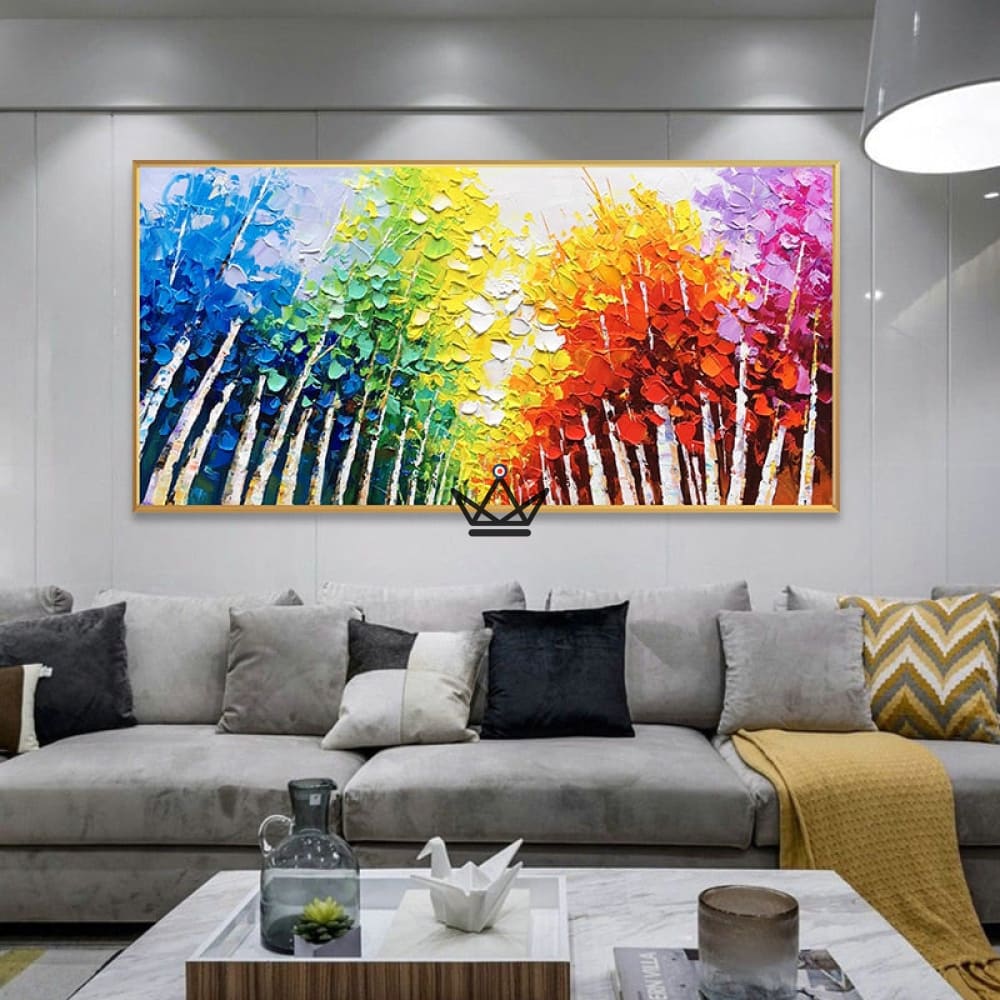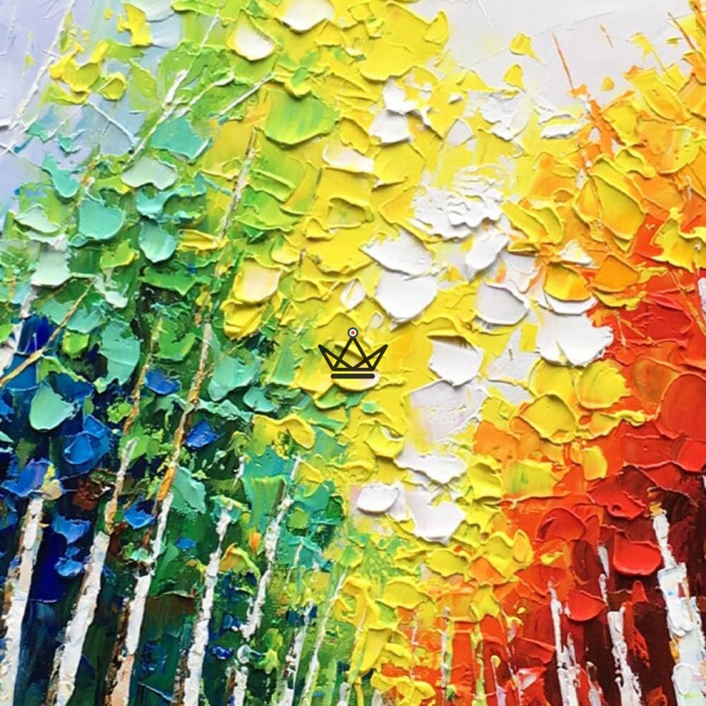 Cette toile est réalisée à la main avec un couteau pour créer un effet de texture unique qui donne vie à la forêt moderne et abstraite. Les couleurs vives et riches ajoutent une dimension supplémentaire à cette œuvre d'art contemporaine.