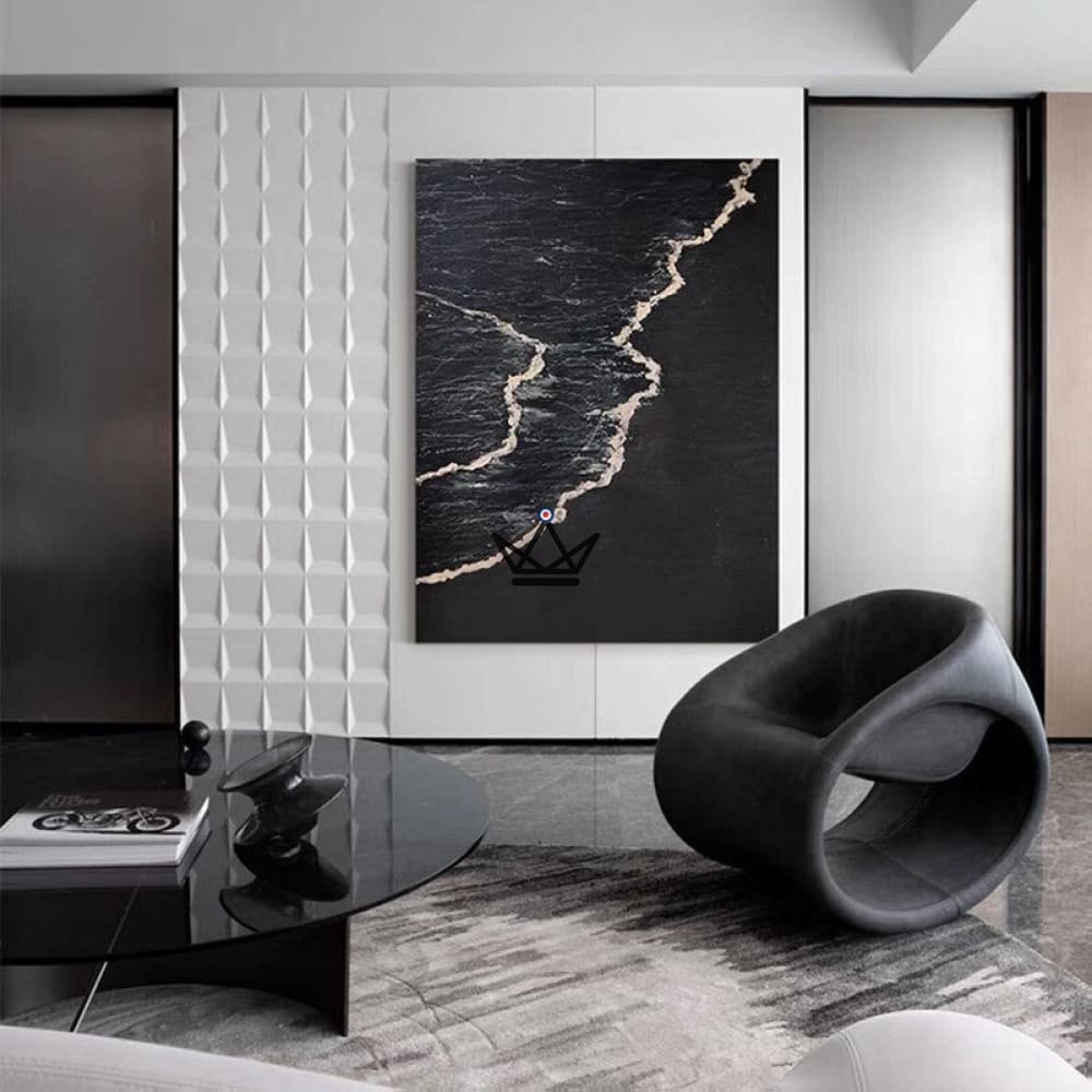 Cette toile abstraite capture parfaitement l'essence d'une plage de sable noir, offrant une touche d'originalité à votre espace de vie.