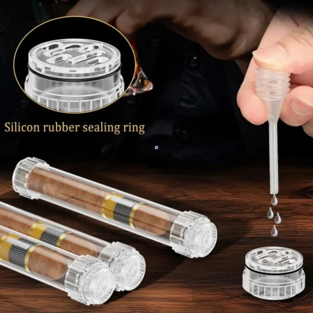 Ce coffret est livré avec trois tubes de voyage transparents avec bagues humidifiantes intégrées. Ils permettent d’emporter vos cigares préférés en toute sécurité, avec un maintien optimal de l’humidité.