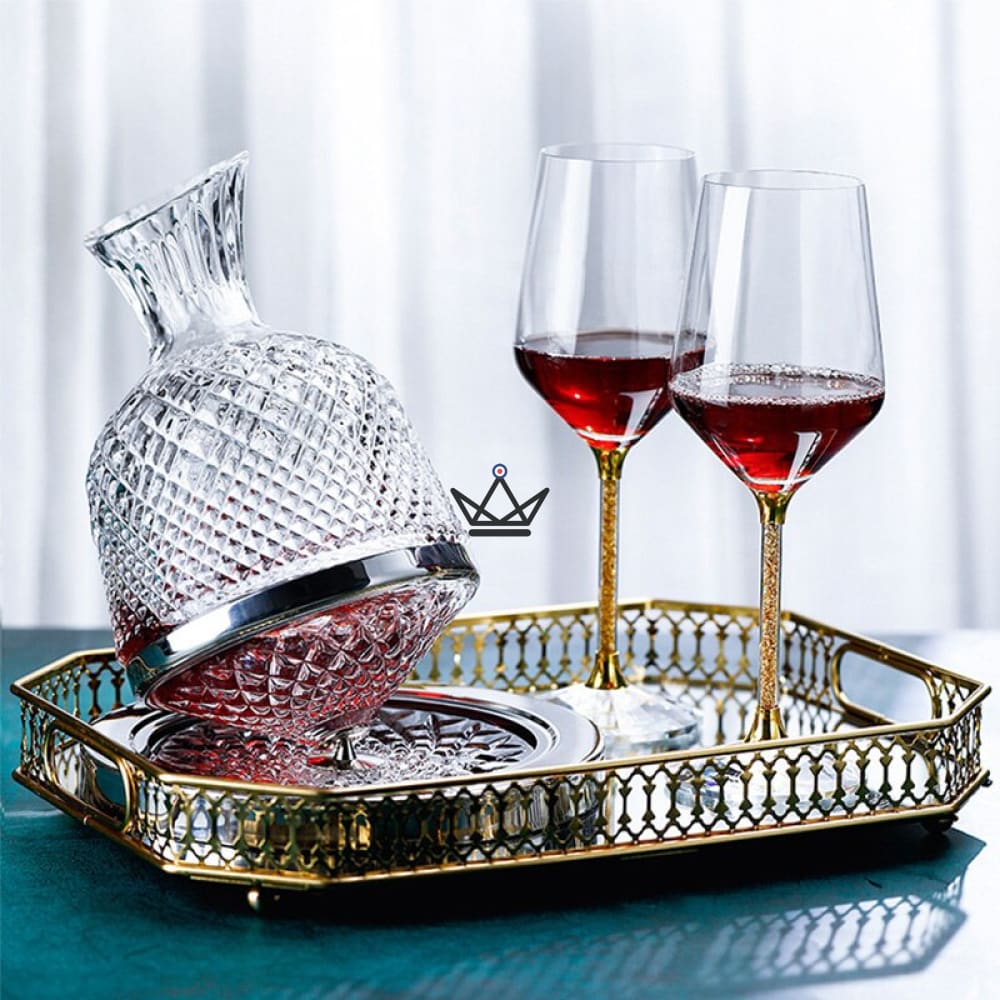 Discover the KingWine Luxe rotating wine decanter, a true jewel of sophistication and functionality. Crafted from Bohemian crystal, this decanter offers an original and elegant design that is sure to impress.