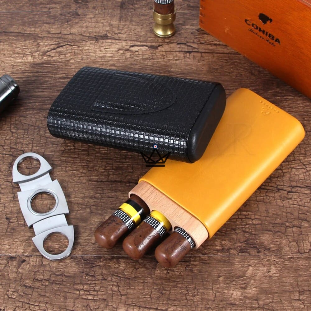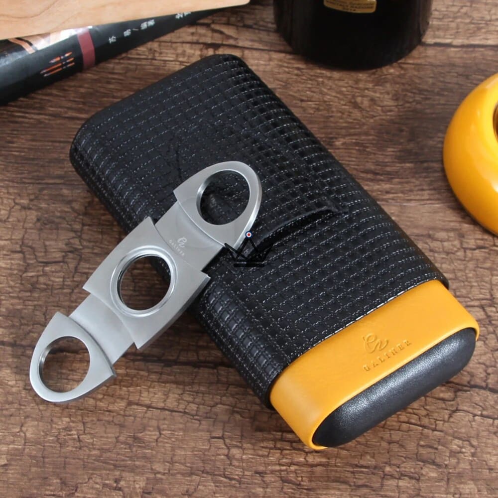 This cigar holder has a three-cigar capacity, making it the perfect companion for carrying your favorite Cohiba cigars in style and elegance. With a yellow lower part that contrasts nicely with the black upper part, it attracts attention with its neat aesthetic.