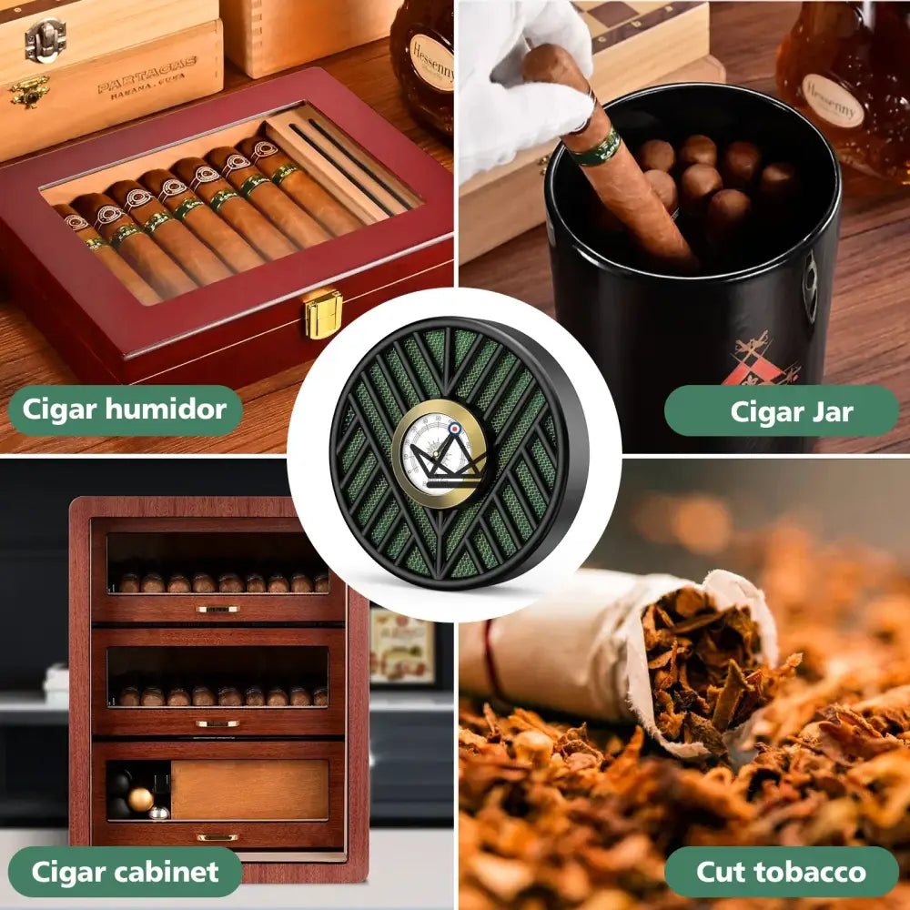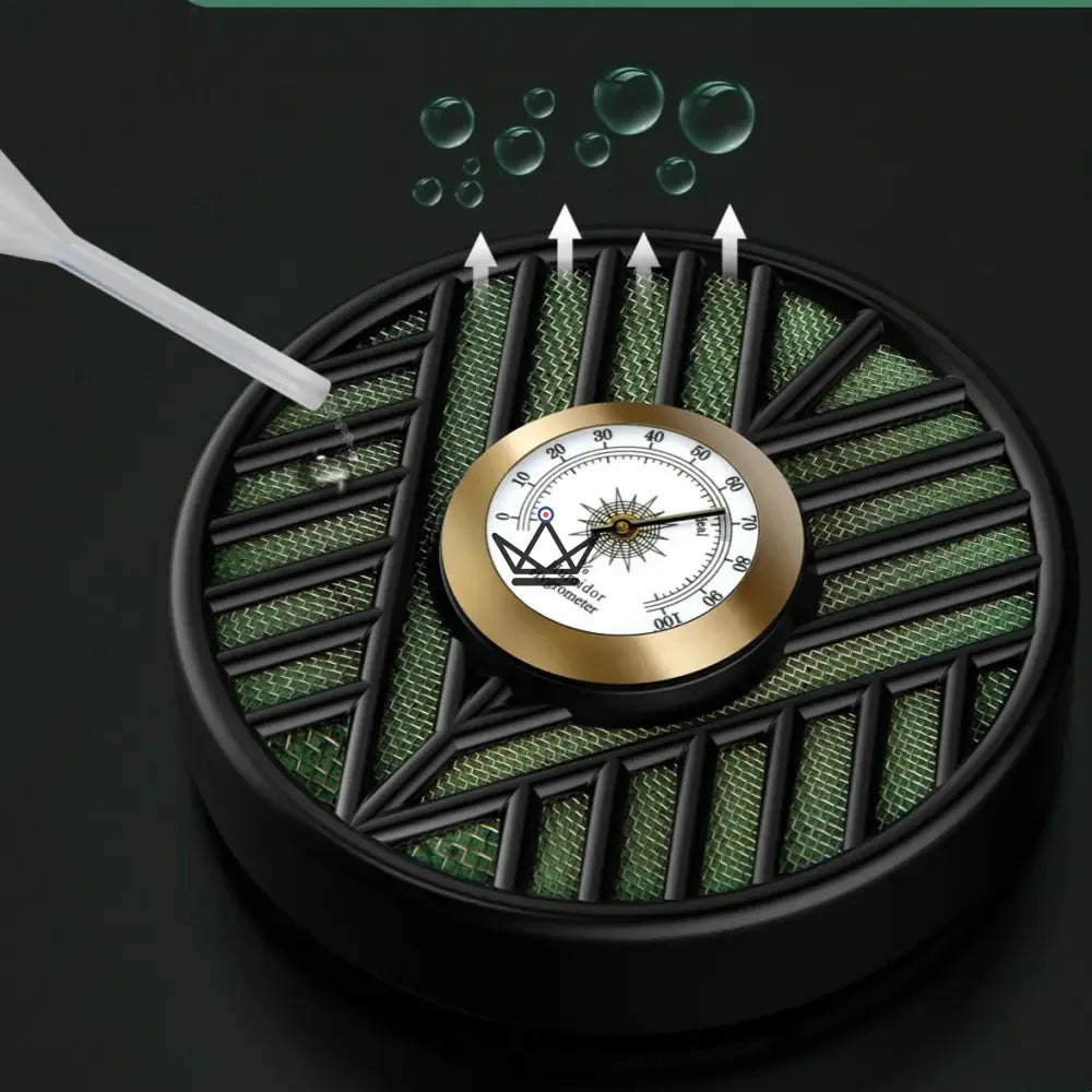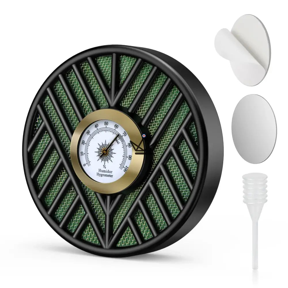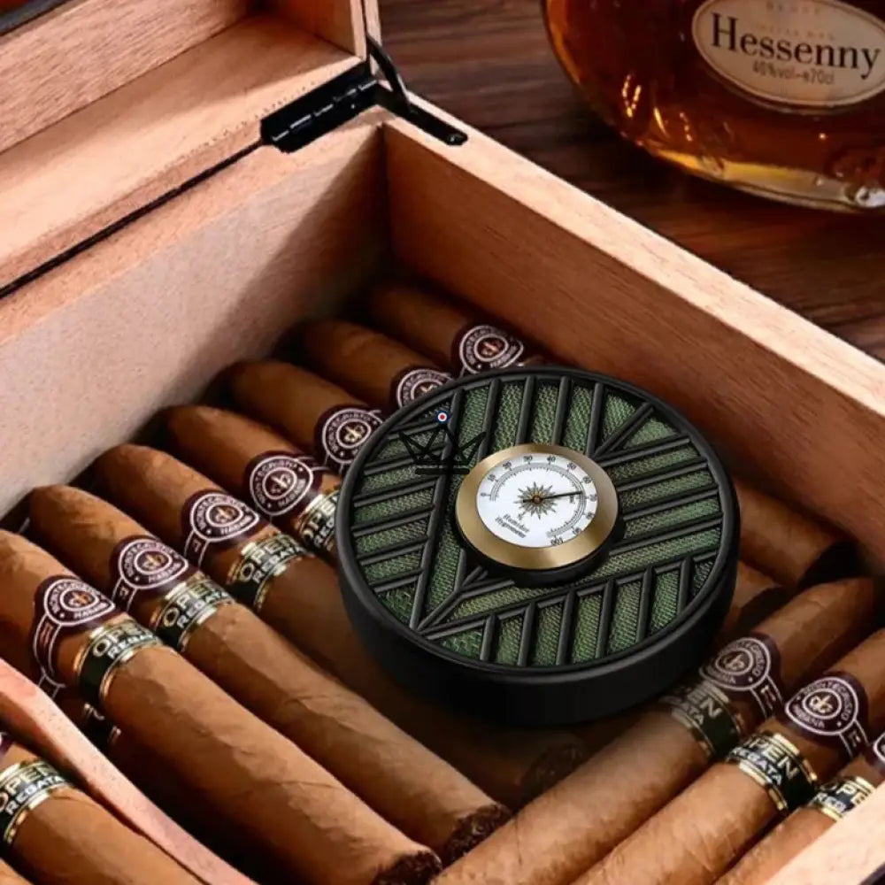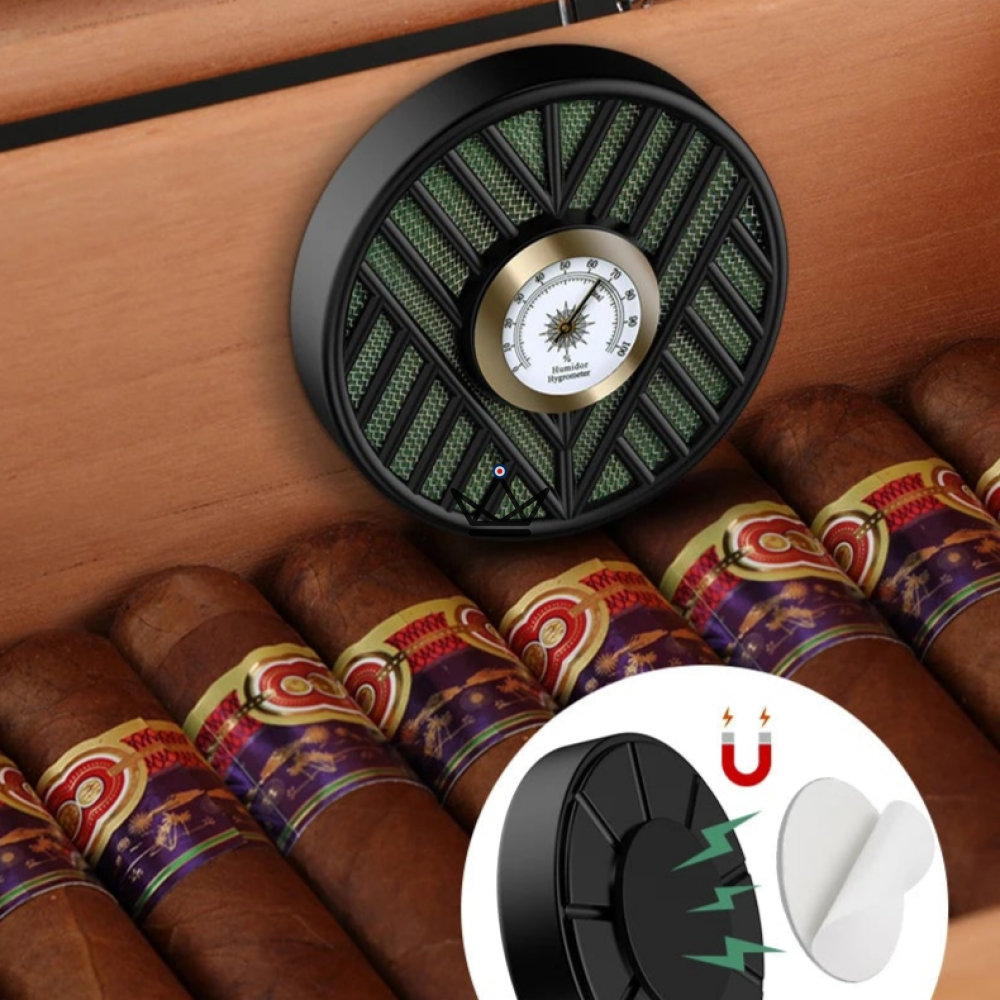 The Oasis Vortex humidifier is inspired by the natural and harmonious movements of air, combining elegant design and optimal performance. This humidor humidifier ensures precise humidity control thanks to its hygrometer integrated in the center, making it easy to monitor humidity levels. It is designed to preserve your cigars in ideal conditions and maintain their freshness.