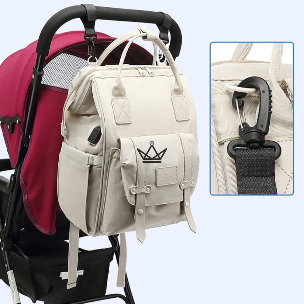 This diaper bag is made from high-quality waterproof materials, ensuring that your baby's belongings stay dry even in rainy weather. It is available in two stylish colours: black or white, allowing you to choose the one that best suits your style and preferences.
