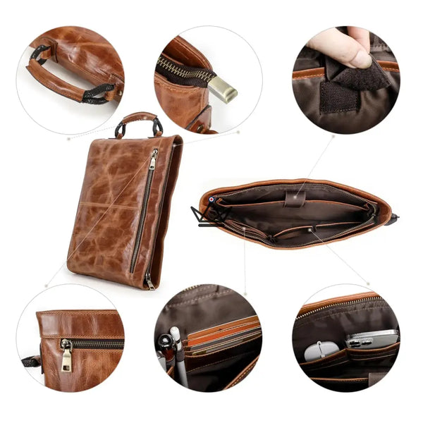 Discover Voyageur Diplomat , the full-grain leather work bag that combines timeless elegance, modern functionality and robustness, designed for demanding professionals. Made from genuine full-grain vegetable-tanned leather , it stands out for its warm tones and patina that enhances over time, guaranteeing a refined and lasting style.